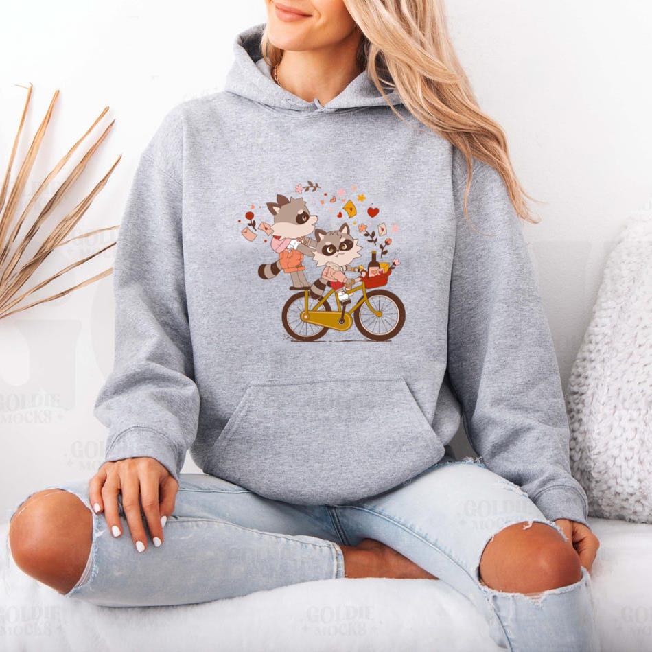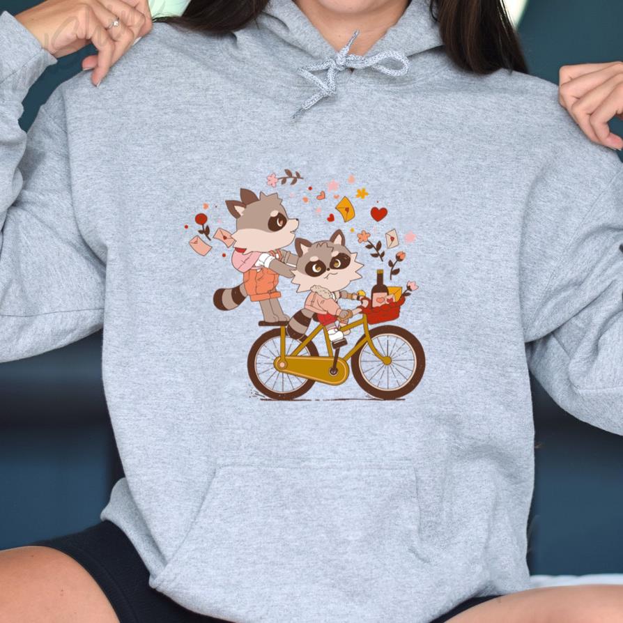 The Love Raccoons On Bike Hoodie hoodie combines comfort warmth and style for a go anywhere piece that works in any season. Soft inside and durable outside it is perfect for layering or lounging