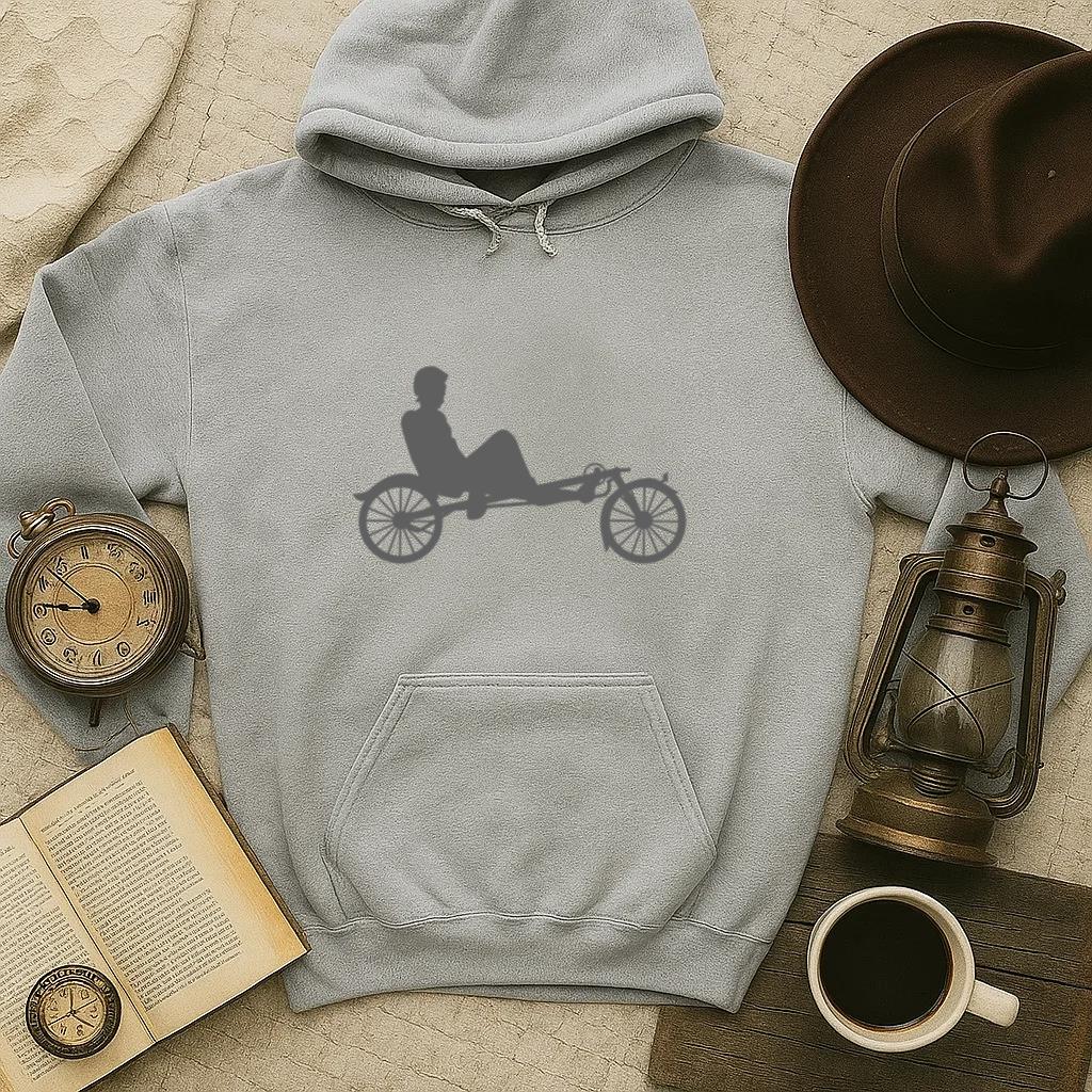 The Man Riding Recumbent Bike Silhouette Hoodie hoodie combines comfort warmth and style for a go anywhere piece that works in any season. Soft inside and durable outside it is perfect for layering or lounging