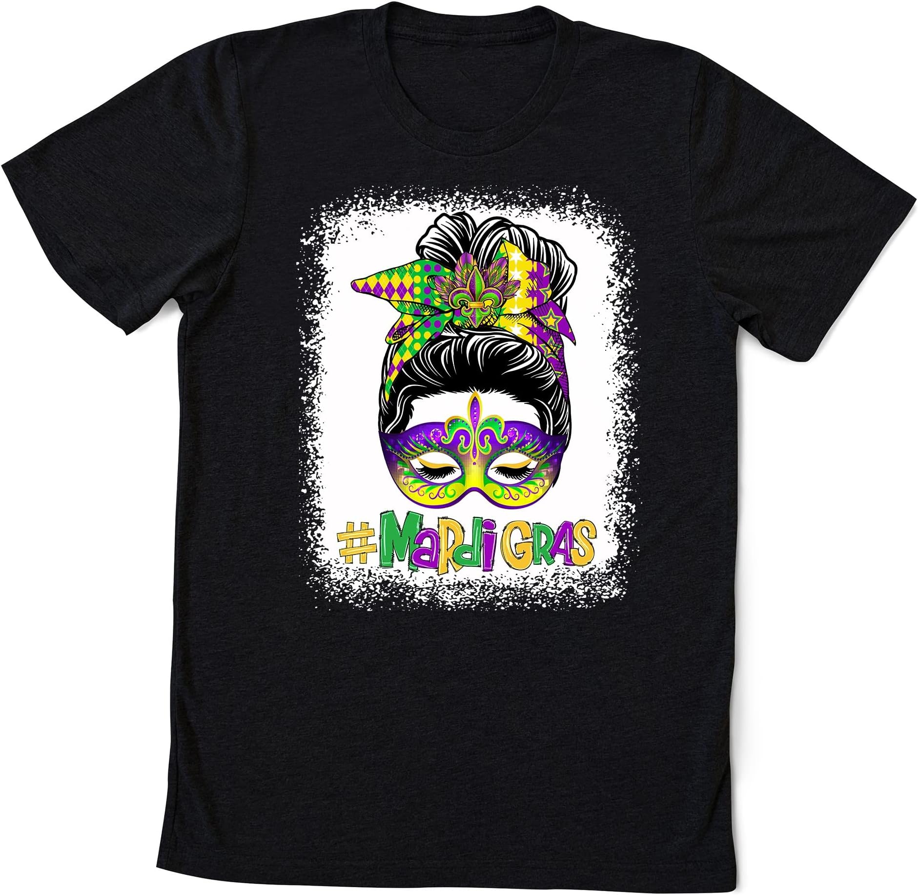 Mardi Gras Messy Bun Mom Shirt,Mama Mardi Gras Shirt, Mardi Gras Custom Name,Fat Tuesday Shirt,New Orleans Tee, NOLA Shirt,Fat Tuesday Shirt Multicolored