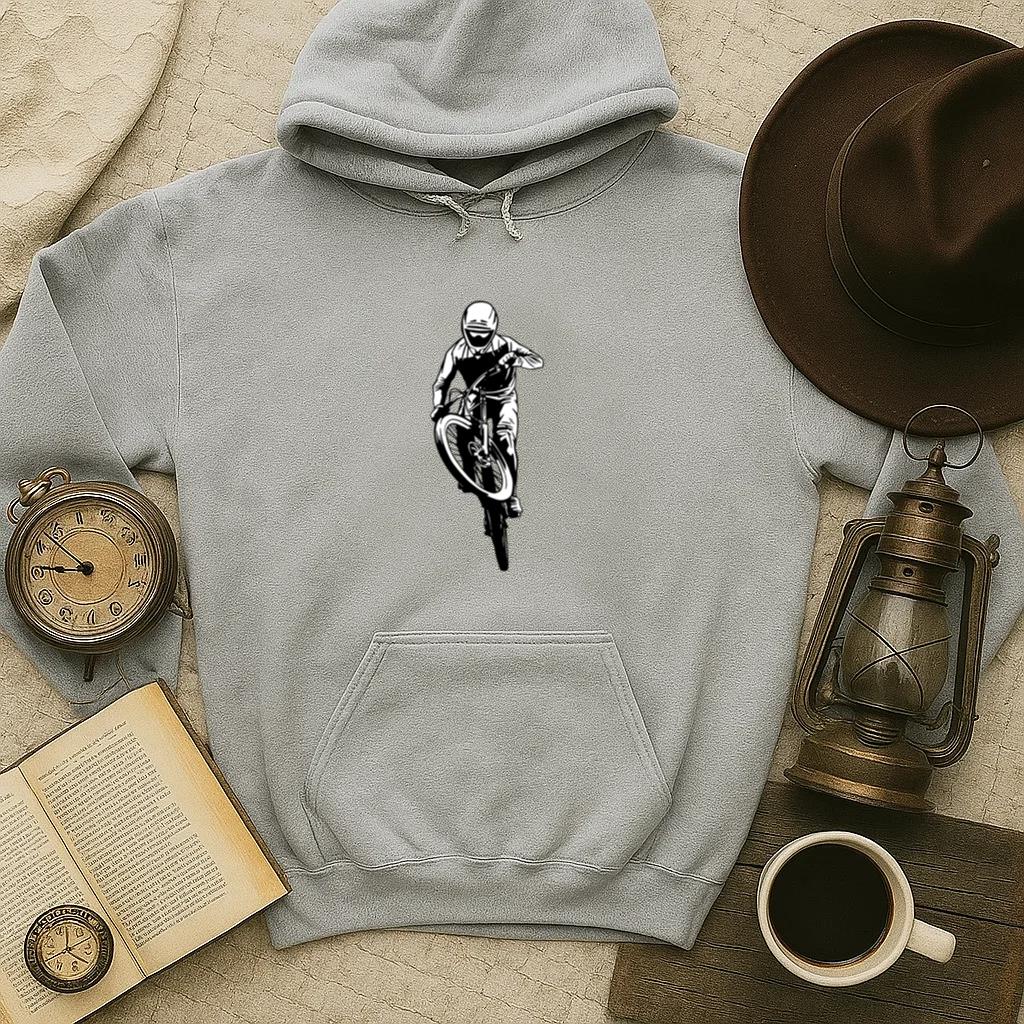 The Mountain Bike Drawn Man Hoodie hoodie combines comfort warmth and style for a go anywhere piece that works in any season. Soft inside and durable outside it is perfect for layering or lounging